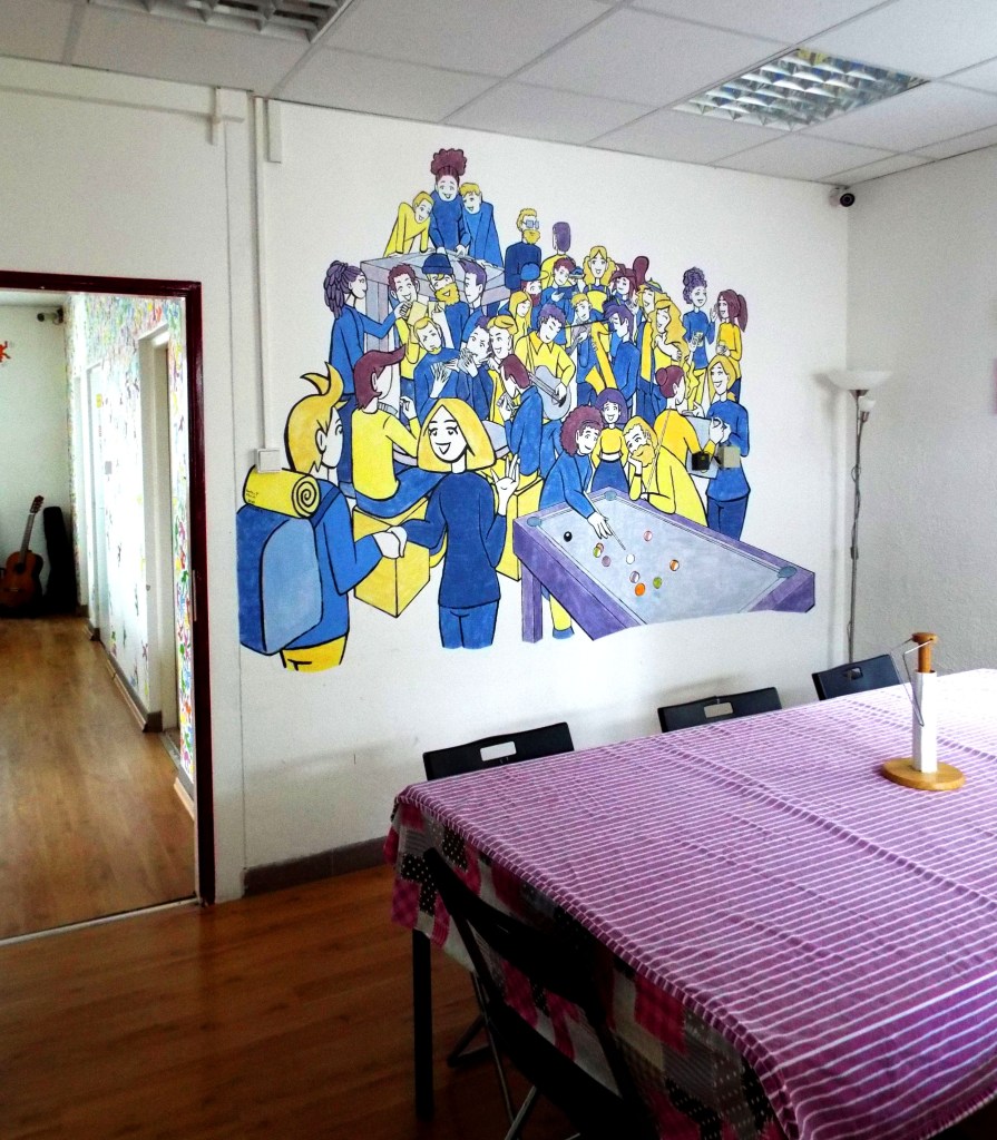 The owner gave me a free choice of what I do on the wall, but the only request was that the painting gives good vibes of the hostel.
