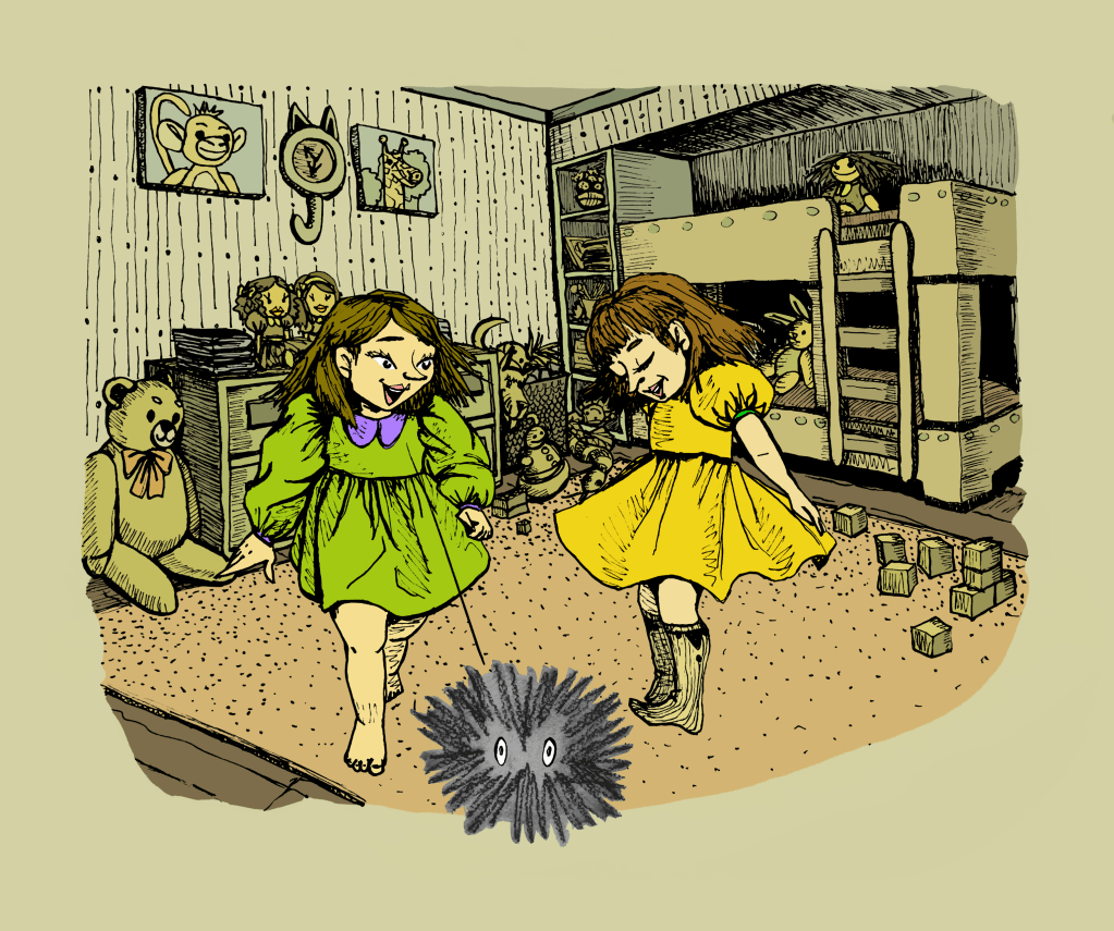 First, I divided the text into different parts. Then, I sketched an idea for each part of the text, which I also showed to the author. When both of us liked the idea, I started drawing the image on paper, for which I used Finline ink pens. When the black line work was done, I digitized the image in Photoshop and added the colors digitally in Procreate.