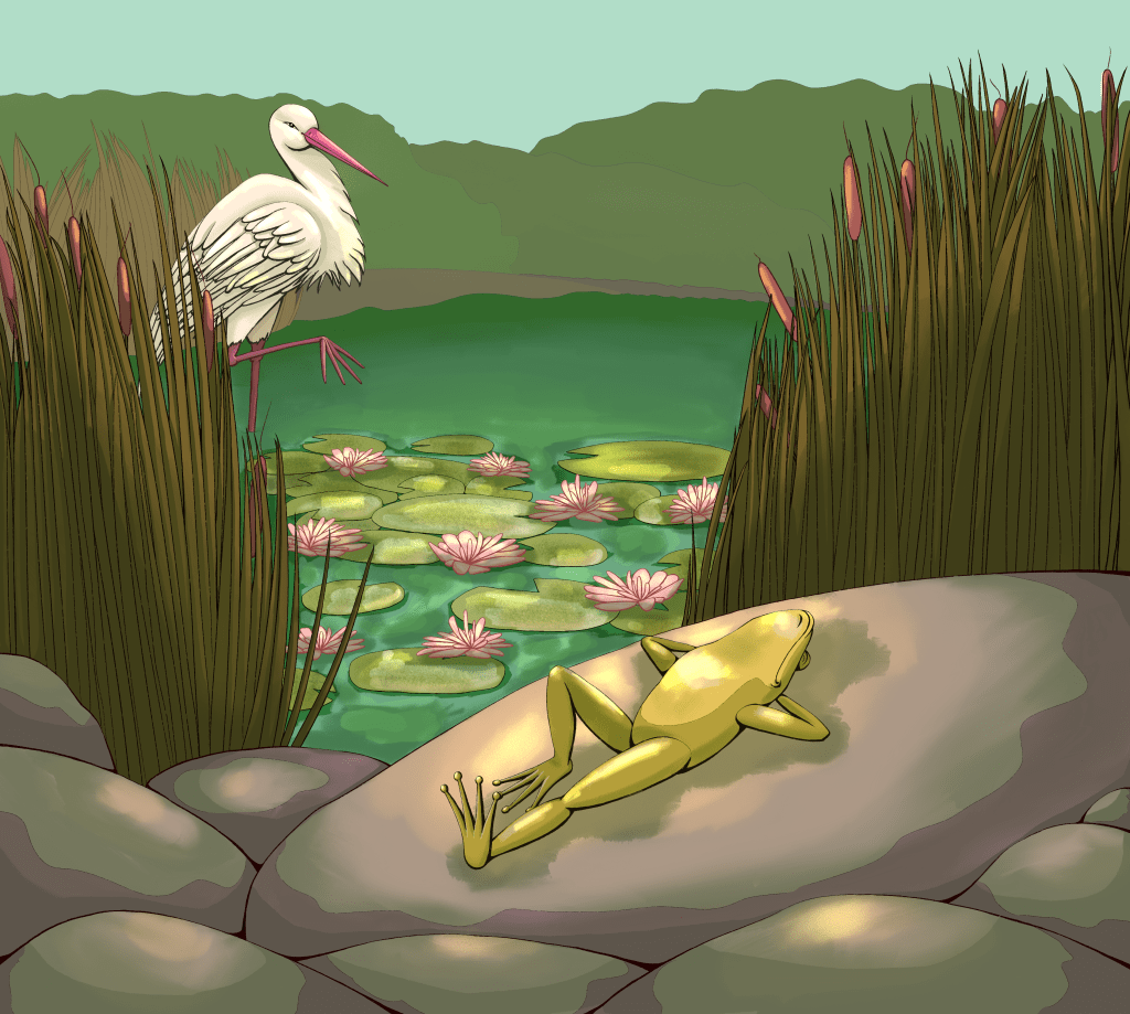 Picture is inspirated from Estonian Children song “Konn ja Kurg”(eng- Frog and Stork)