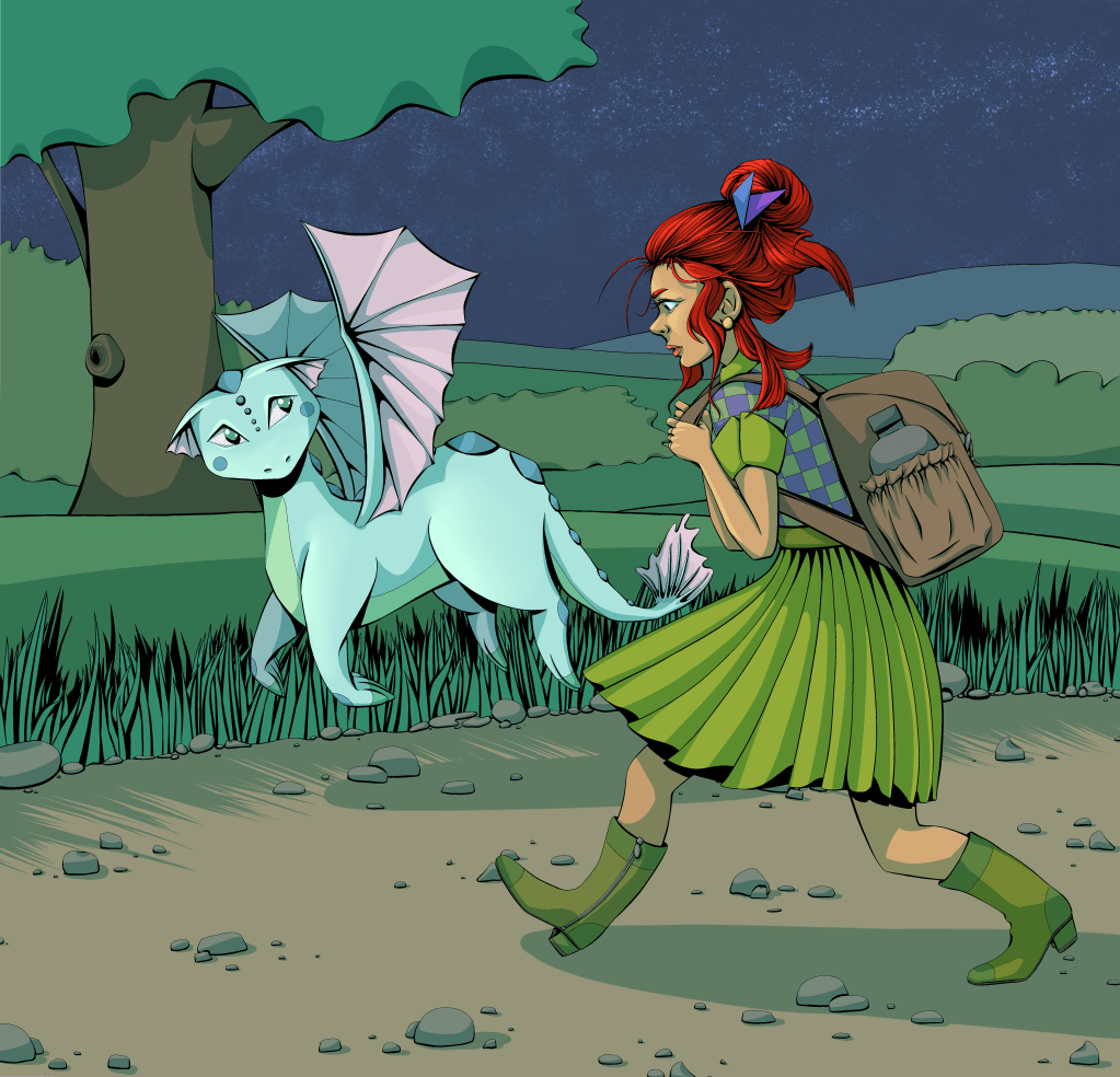 Mixed media – Lines are added in paper with Fine liners and colors are added digitally in Clip Studio Paint.